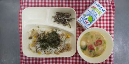 今日から3学期の給食が始まりました。新年最初の献立は、れんこんのちらしずし、ぞう煮、ごまめでした。正月料理には新年を祝う気持ちや色々な願いをこめたものがたくさんあります。れんこんは「先の見通しが利くように」、ごまめは「豊作を願って」いただきます。ぞう煮は地域によって様々ですが、給食では丸い白玉もちを使って関西風の白みそで仕上げています。1月は他にもおせち料理が登場するので楽しみにしていてくださいね。