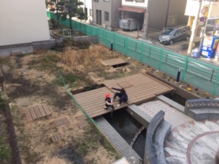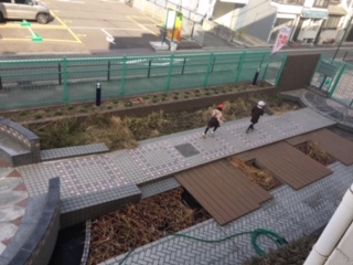 「ビオトープを開けてください!」と一年生。O先生が開けてくださいました。メダカなどの生き物はいたかな?