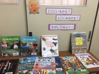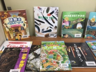 2年生の教室前にはいつも色々な本が展示してあり、子どもたちもたくさん親しんでいます。昔話や図鑑的なものなど様々です。