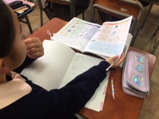 昔の人々の暮らしについて調べたり、考えたりしました。昔と言っても子どもたちにはどのくらい昔なのか、なかなか分かりにくいものです。生活用具の写真を見て、考えています。23日には今昔館に行っていろいろな昔の道具などを見てきます。