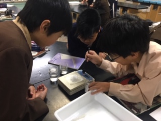 食塩が80gの水にどれくらい溶けるか調べました。少しずつ食塩を計り、溶けていくようすを見て結果をまとめていきました。