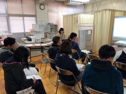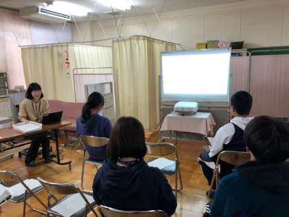 今月は保健室の仕事や学校保健について、養護教諭のH先生から講話がありました。