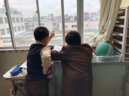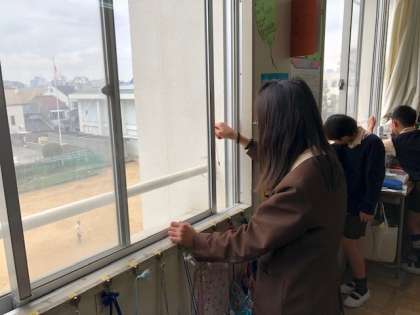 家庭科では、「寒い季節を快適に」の学習で換気をすることによってどのように気温や湿度が変化するかを調べました。