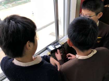 「寒い季節をあたたかく」の学習では、照度計を使って校内の明るさをグループで測って回りました。