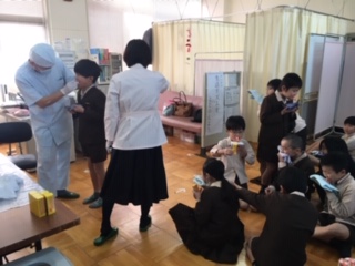 歯科校医の先生や歯科衛生士さんに来校していただき、歯にフッ化物を塗布していただきました。フッ化物は、むし歯予防や丈夫な歯をつくるために大切な役割を果たしています。