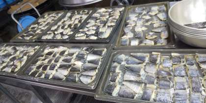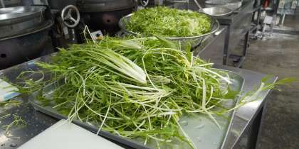 今日の献立は、さごしのしょうゆだれかけ、みそ汁、みずなの煮びたし、ごはん、牛乳でした。水菜は年に1回登場する今が一番おいしい冬野菜です。煮びたしの他、鍋に入れたり、サラダにしたり、色々な使い方ができますよ。