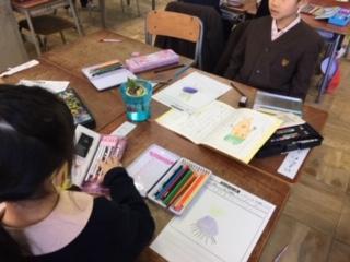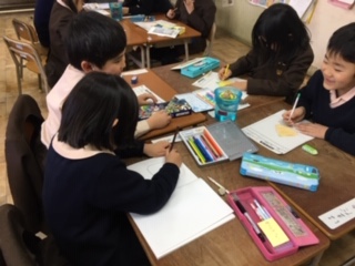 育てているヒヤシンスの観察をしました。よく見て、絵や文で表現しました。根の方が伸びているのもあり、びっくりしていました。