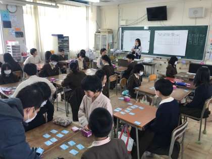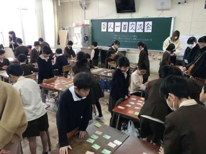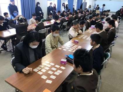 4.5.6年生は3時間目に百人一首交流を行いました。個人戦や団体戦など形を変えながら、交流を楽しみました。