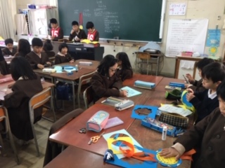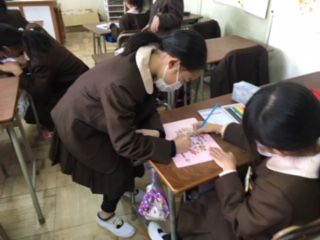 1時間目、たてわり班でお世話になった6年生へのメッセージカードなどを作りました。5年生がリーダーとなって会を進めていきました。6年生と過ごすのもあとわずかですね。