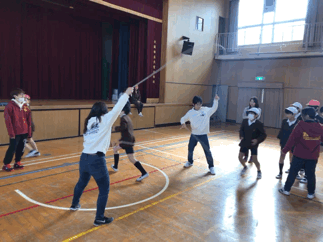 京都大学からゲストティーチャーに来ていただき、ダブルダッチの出前授業がありました。はじめはなかなか跳ぶことができませんでしたが、時間が経つにつれて、どんどん上達し、連続で52回跳ぶことができました。楽しそうに体を動かす姿に、体力向上へのヒントが得られました。
