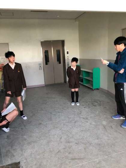 休み時間には、司会の担当者がエレベーターホールに集まって練習していました。