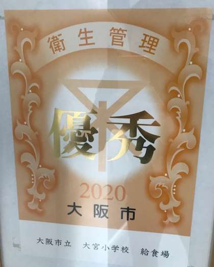 大宮小学校の給食室が、環境衛生・食品衛生において、非常に優秀であるとして、大阪市より優秀標が授与されました。今後とも衛生水準の向上に尽力していきます。