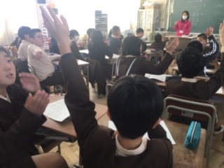 卒業生を送る会で、お礼に歌う歌のパートを決めていました。男子は高音が出にくくなる時期ですね。どこのパートにしたのかな?