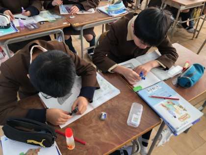 算数は、多角形の学習を進めています。今日は、正六角形をコンパスを用いて作図しました。
