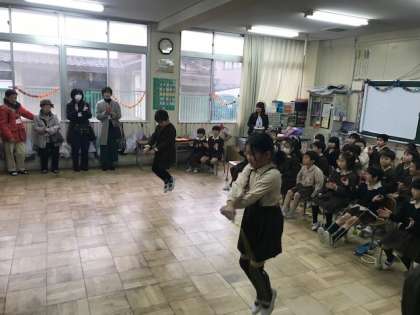 ありがとう発表会を行いました。音楽に合わせてなわとびをするなど、今年度学習してきたことをグループごとに発表する姿に、一年間の成長が見られました。