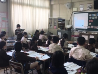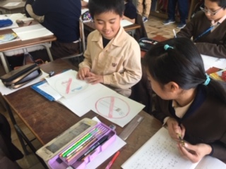 絵があらわしている意味を説明する学習をし、今日は、自分で考えた絵文字の説明文を書きました。オリンピックで日本に来た外国の人にも分かりやすいものをと、一人一人考えて絵を描き、隣の人に説明してアドバイスや質問をもらいました。子どもたちは、意欲的にピクトグラムについて調べたり、考えたり、文で説明したりできました。