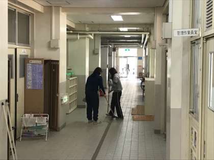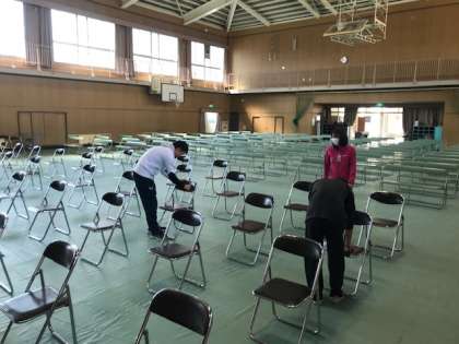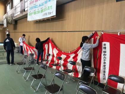 明日行われる卒業式に向けて、教職員で会場の準備やそうじを行いました。