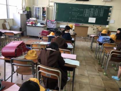 2クラスをそれぞれ2分割にして学習をしました。算数プリントや、作文などを書きました。