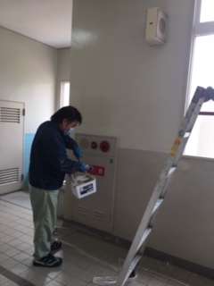 北校舎一階の壁をきれいにしています。明るくなりました!