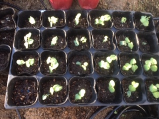 4月末に撒いた種が芽を出し、大きくなってきました。ミニトマト、オクラ、きゅうり、ナスなどです。
