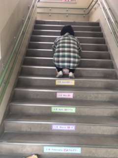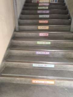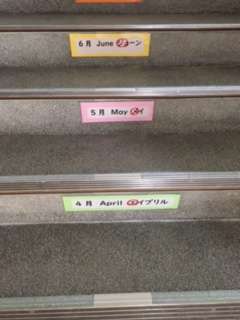 いろいろな言葉を貼っています。今は、英語で月の名前を貼っています。発音する時のアクセントの位置に赤丸を付けています。