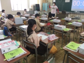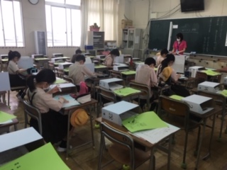 詩の視写、音読カードなどこれから行っていく学習に必要なものなどを確認しています。
