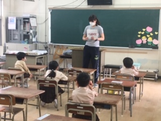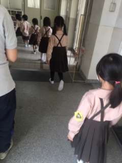 給食室前の手洗い場まで並んで手を洗いにいきました。