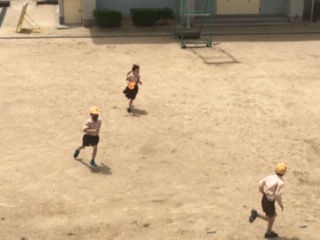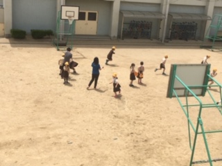 運動場で影踏みをしていました。天気が良くさわやかな風も吹いていて、子どもたちも気持ち良さそうでした!