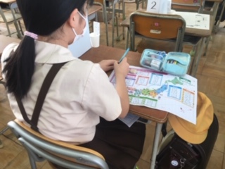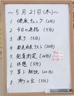 5年生の今日の予定です。都道府県名のテストをしています。4年生の時に全て漢字で書くことを指導しています。