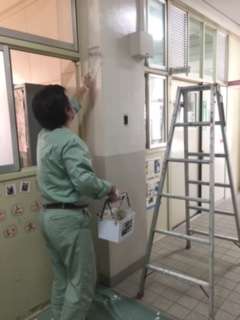 子どもが下校した後、残りの部分を順次塗装しています。美しい環境で学習をさせたいと思っています。