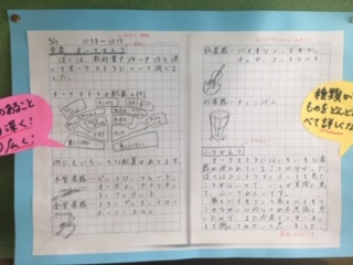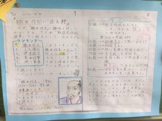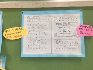 先生達が自主学習の見本を作り、教室に掲示しています。教科、テーマは自由。課題以外にいろいろ自分なりにテーマを考えて挑戦してほしいです。