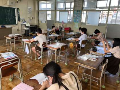 算数の小テストをしています。来週水曜から授業が開始する6年生は、早速算数も学年を分割して行う予定です。