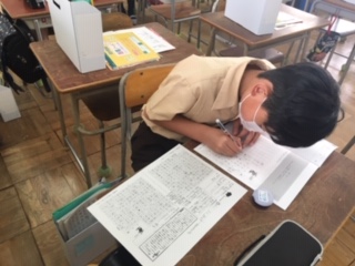 小学生新聞のコラム「天声子ども語」の視写をしています。15分で内容を黙読しながら、正しく丁寧に書いています。文章を書き写すことで語彙力や文章を作る力などが付いてきます。1年間続ける予定です。
