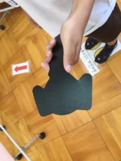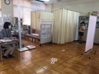 今日から視力検査を開始しています。一人一枚ずつの遮眼子を使い、終わったら回収しています。