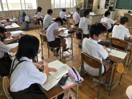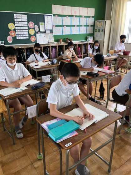 漢字テストの後、サボテンの花と生きるの2つを読み比べて、違っているところと共通しているところについてワークシートに書きました。