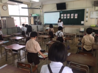 前の掲示板に予定が分かりやすく示してあります。休み時間になったら、次の時間の学習の用意をしてから休憩をしています。