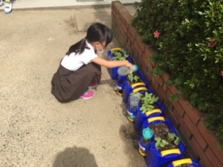 アサガオの双葉が出ました。毎日忘れずに水やりをしています。
