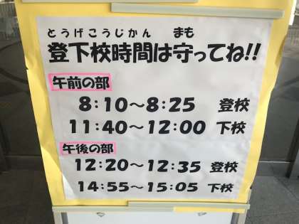 午後の部は、【12時20分〜12時35分】の間に、学校に着くように、ご協力をお願いします。