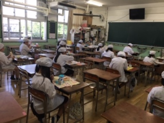 本来ならおしゃべりなどを楽しみながら食べる給食。残念ながら今は、じっと我慢です!