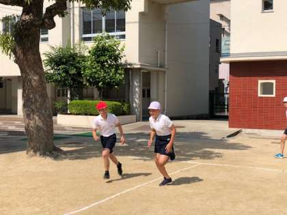 朝から強い日差しで、子どもたちも暑そうにしています。