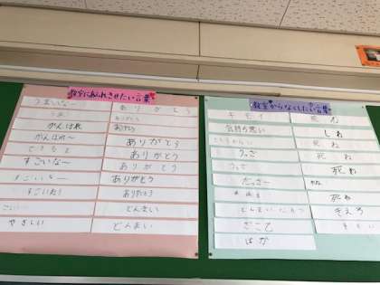 朝の時間を使って、教室にあふれさせたい言葉と教室からなくしたい言葉について考えました。
