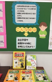 自主学習、自由研究などについての本が紹介してあります。来週から図書室も開放になります。入室前の手洗い、読み終わった後の手洗いをしっかりして本を楽しみましょう!