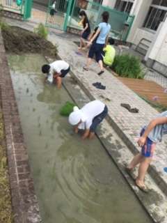昨日午後の部の子どもたちが、田植えをしました。雨が上がりラッキーでした。「泥の中に入って苗を植えるのは最初はぬるっとしていて気持ち悪かったけど、だんだん慣れて楽しくなってきた。」「米作りって大変やなって思った!」などと話していました。まだまだこれからが大半ですよ。おいしいお米ができますように!
