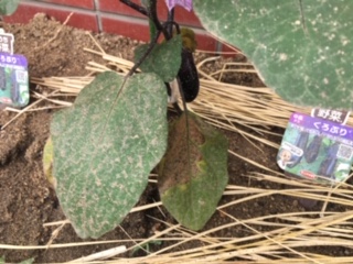 ひまわり学級の野菜も大きくなっています。ナスが実をつけています。