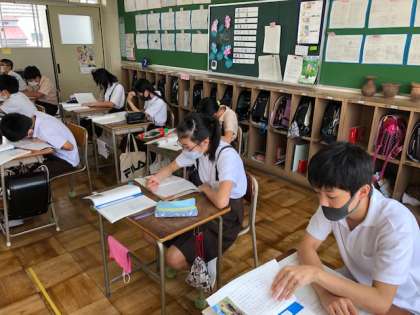 説明文「イースター島にはなぜ森林がないのか」の学習を通して、筆者の表現の分かりやすさや分かりにくさについて教科書から探し、隣同士で交流しました。