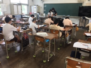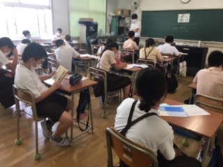 6年生は、1日から全員揃っての学習をしているので、いつも通り朝の会の連絡が終わると、漢字テストやテスト直しなどをそれぞれがやっています。
