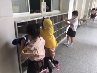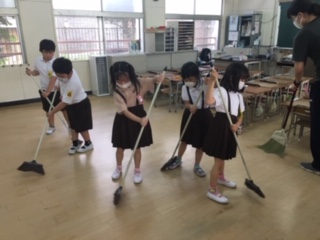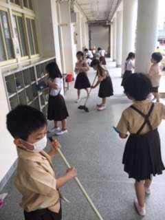 なんでも初めてづくしです。給食、昼休みの後、掃除をしました。みんな一生懸命です!きれいになりました!!