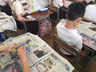 朝日小学生新聞社のT記者に出前授業をしていただきました。初めに新聞記者の仕事について教えていただきました。情報は、意図的に操作できてしまうこと、使われている写真には書き手の意図があることなどを力士の写真などわかりやすい例や写真を使って説明してくださいました。また、オランウータンの写真やボルネオ島の森林の変遷の図などから環境問題、食品ロスなどについても考える視点を与えてくださいました。この授業を受けて、「新聞の記事を読み比べよう」を学習していきます。