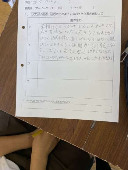 鑑賞では、ハンガリー舞曲の速さや強さに着目しながらみんなで拍を手で打って確かめました。