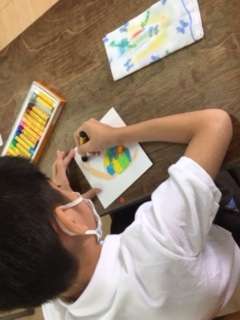 カタツムリを描きました。線をしっかり描いて模様や色も自分だけのカタツムリを描きました。しっかり塗り込むと指の力もつき、巧みに動かす練習になります。